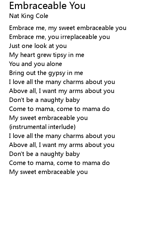 | Embrace me, my sweet embraceable you | |