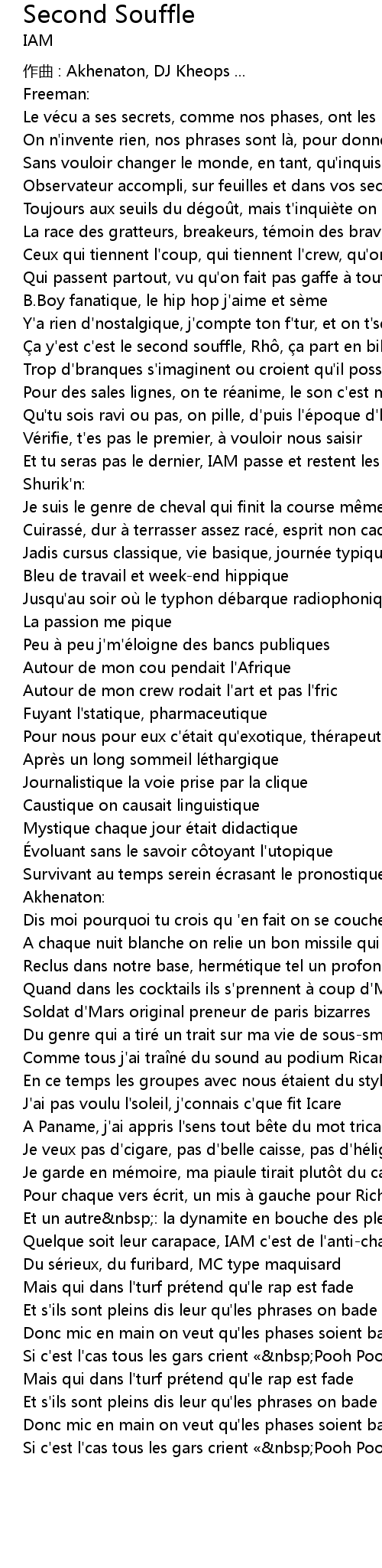 | 作曲 : Akhenaton, DJ Kheops ... | |