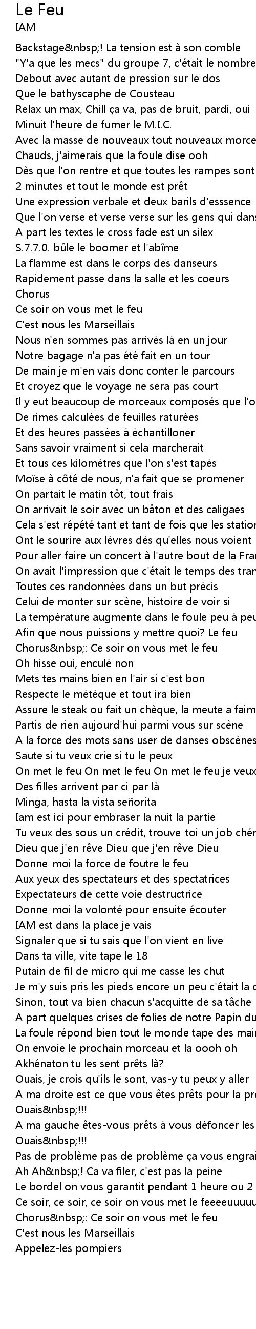 | Chorus nbsp: Ce soir on vous met le feu | |