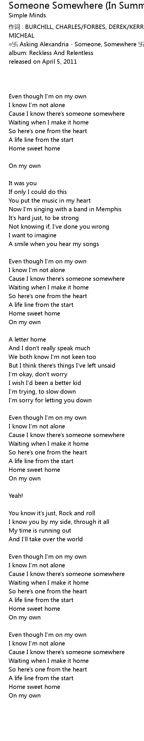 | 歌曲 | Someone Somewhere (In Summertime) |
