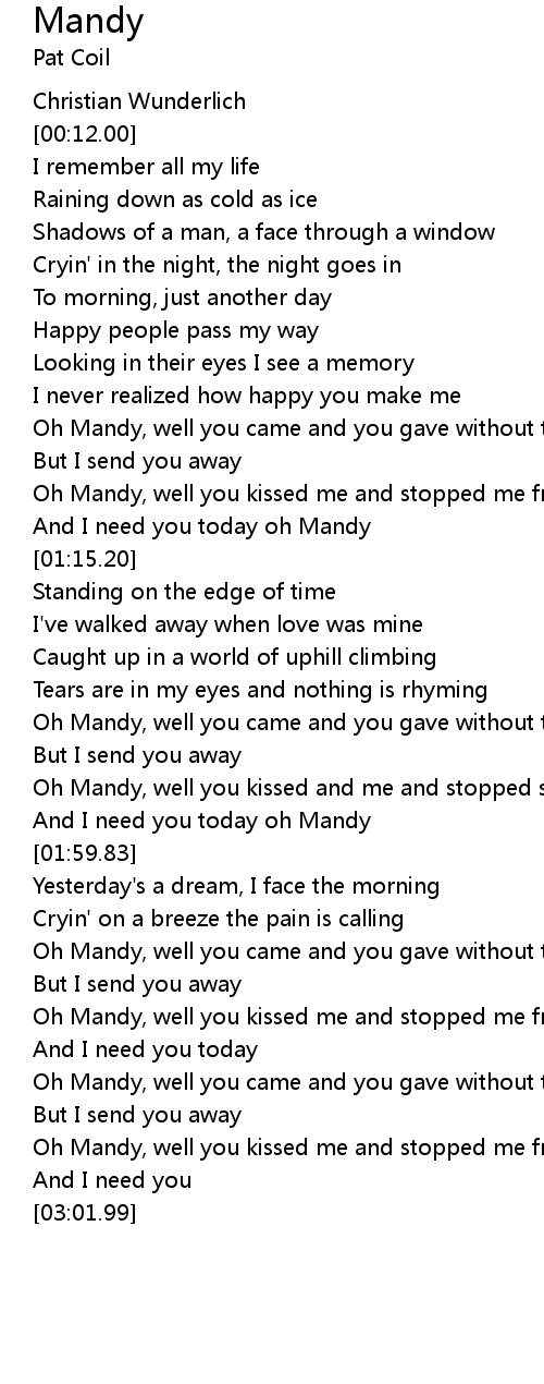 Oh Mandy, well you kissed me and stopped me from shaking |
