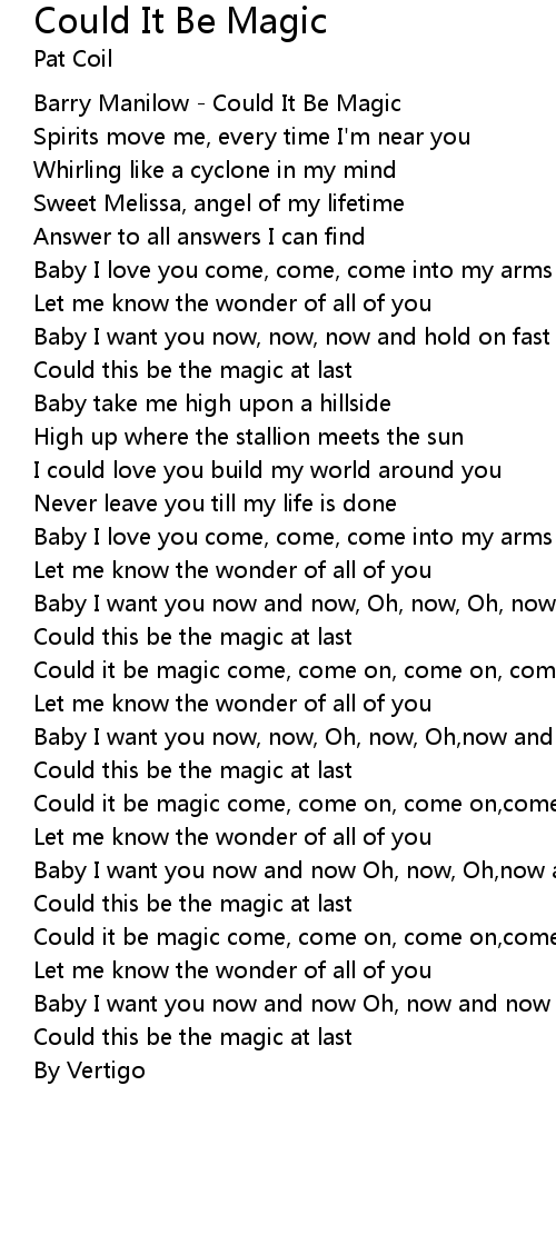 Could it be magic come, come on, come on, come, Oh,come into my eyes |