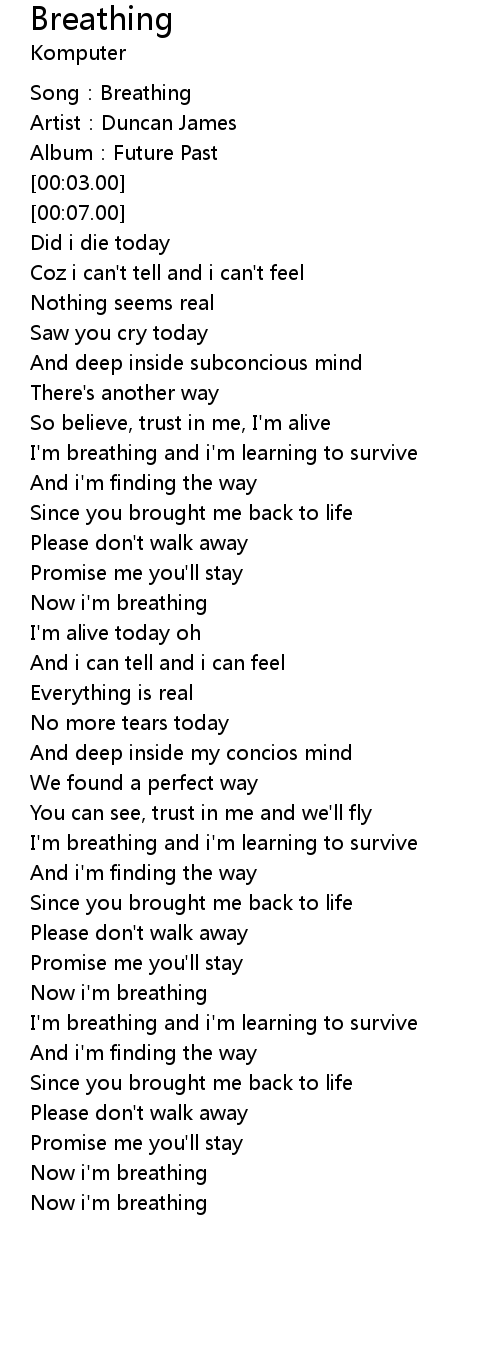 | [00:41.20] | I'm breathing and i'm learning to survive |