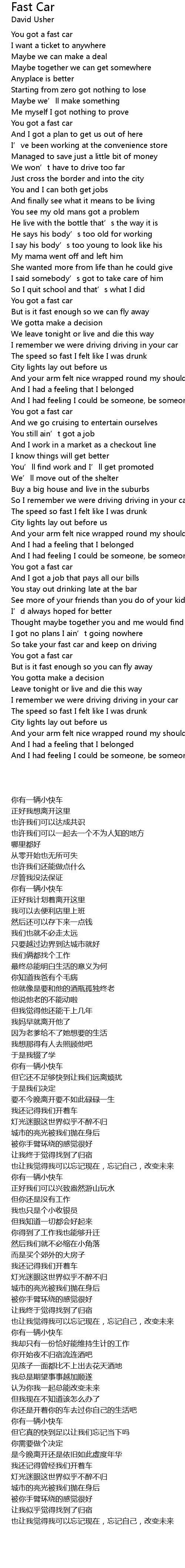 | 歌曲 | Fast Car |