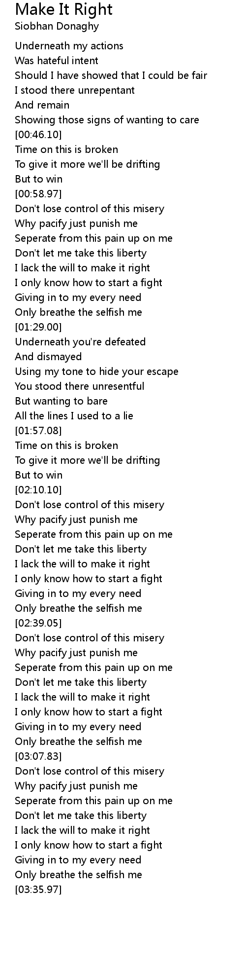 I lack the will to make it right |