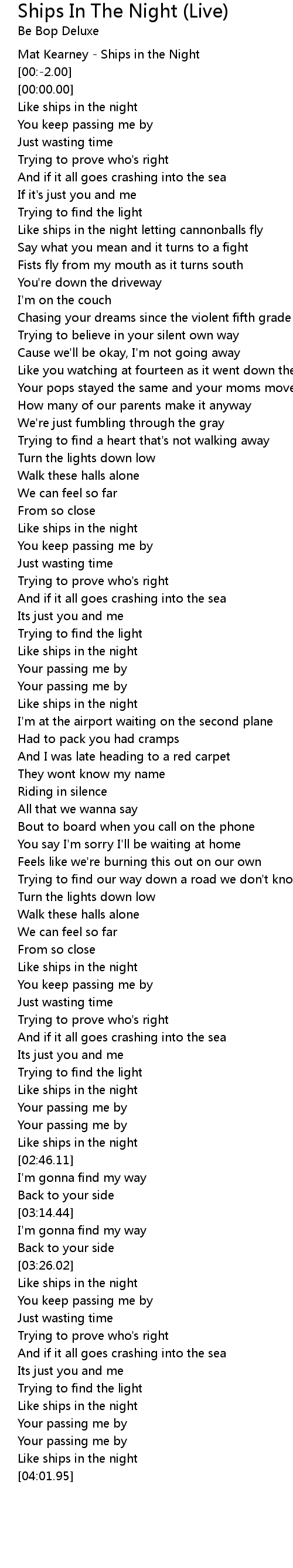 Mat Kearney - Ships in the Night |