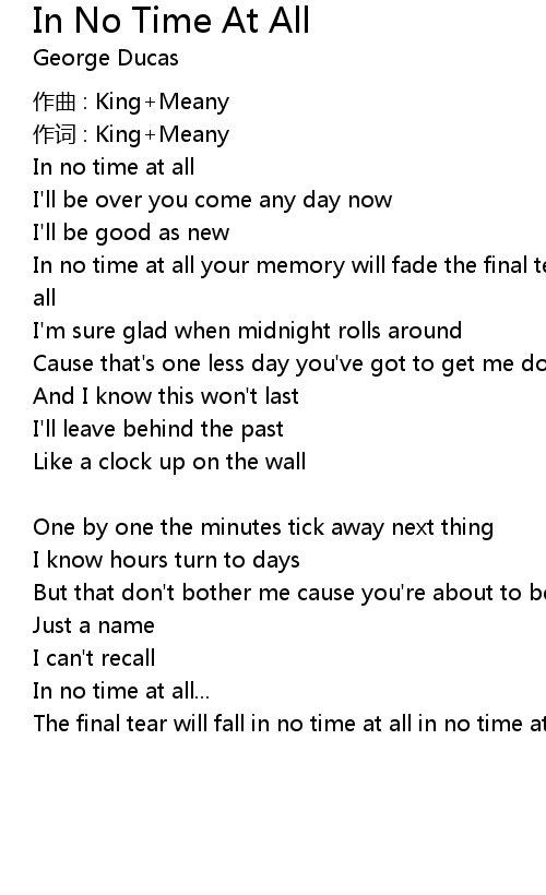 | In no time at all your memory will fade the final tear will fall in no time at all | |