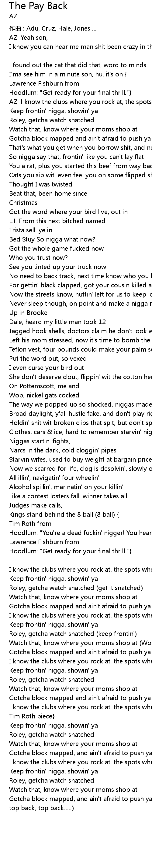 | 歌曲 | The Pay Back |