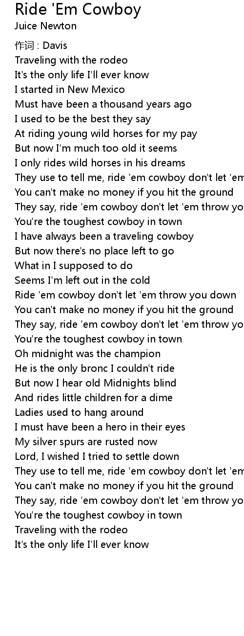| They say, ride ' em cowboy don' t let ' em throw you down | |