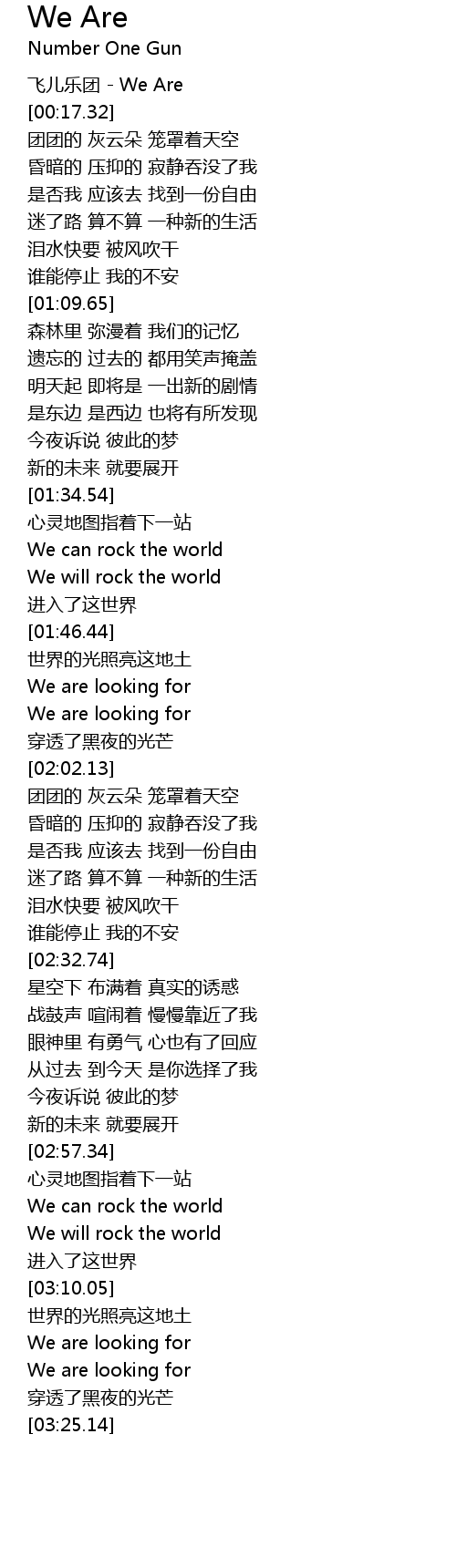 | [00:00.17] | 飞儿乐团 - We Are |