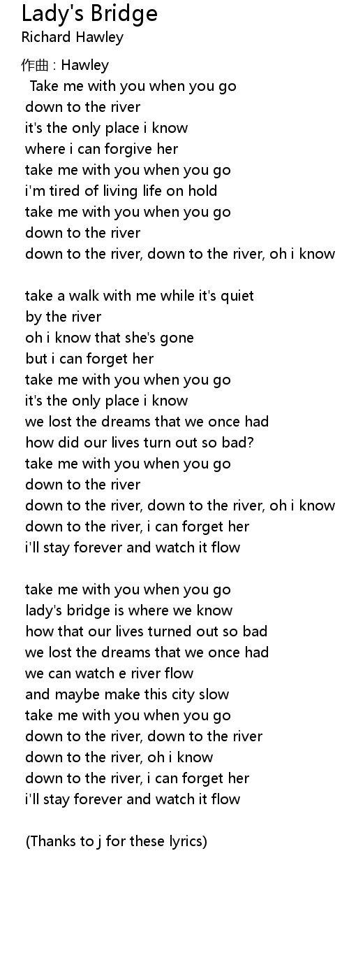 | down to the river, oh i know | |