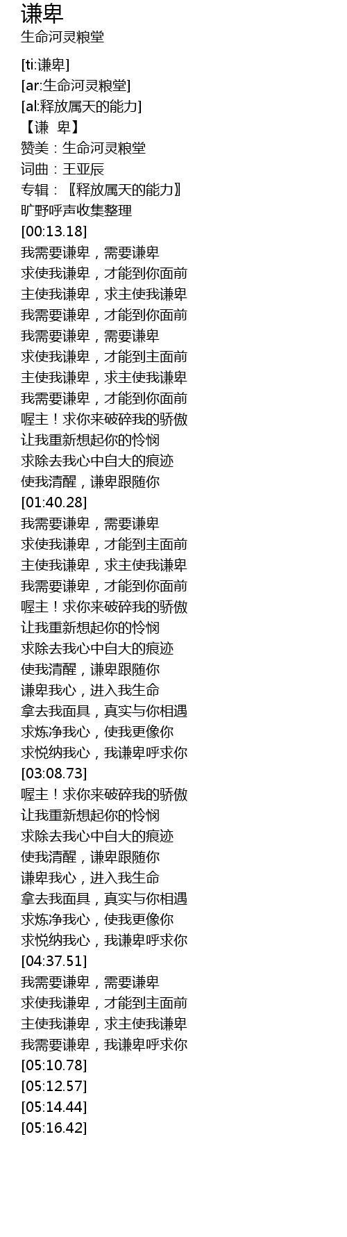 | [04:58.69] | 我需要谦卑,我谦卑呼求你 |