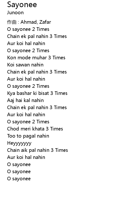 Sayonee 歌词