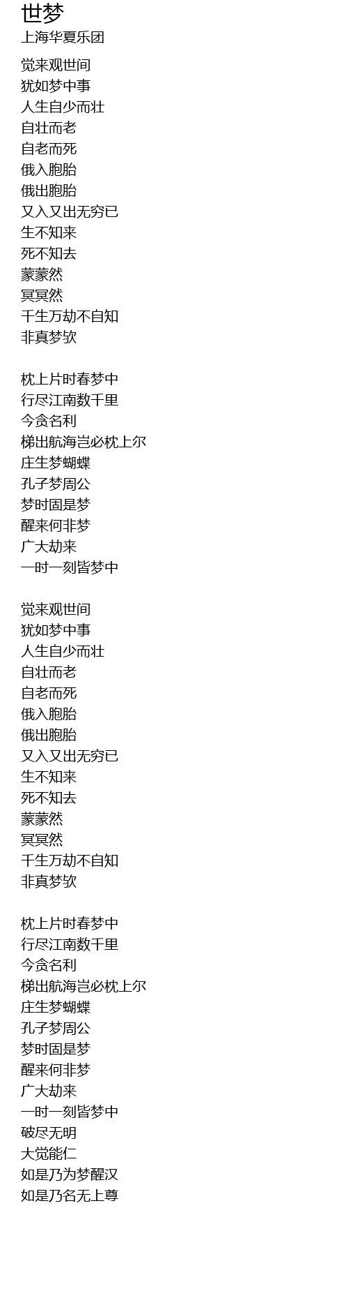 | 歌曲 | 世梦 |