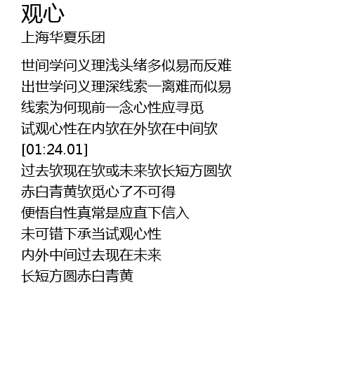 | [01:45.08] | 赤白青黄欤觅心了不可得 |