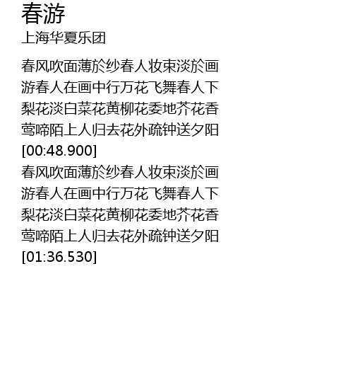 | [01:03.900] | 游春人在画中行万花飞舞春人下 |