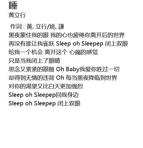 | [02:11.80] | Sleep oh Sleepep bì shang shuāng yǎn |