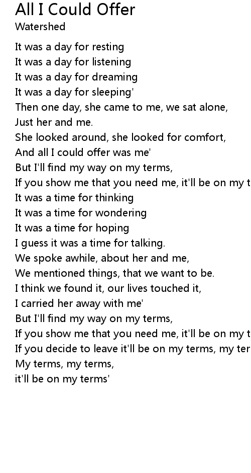 My terms, my terms, |