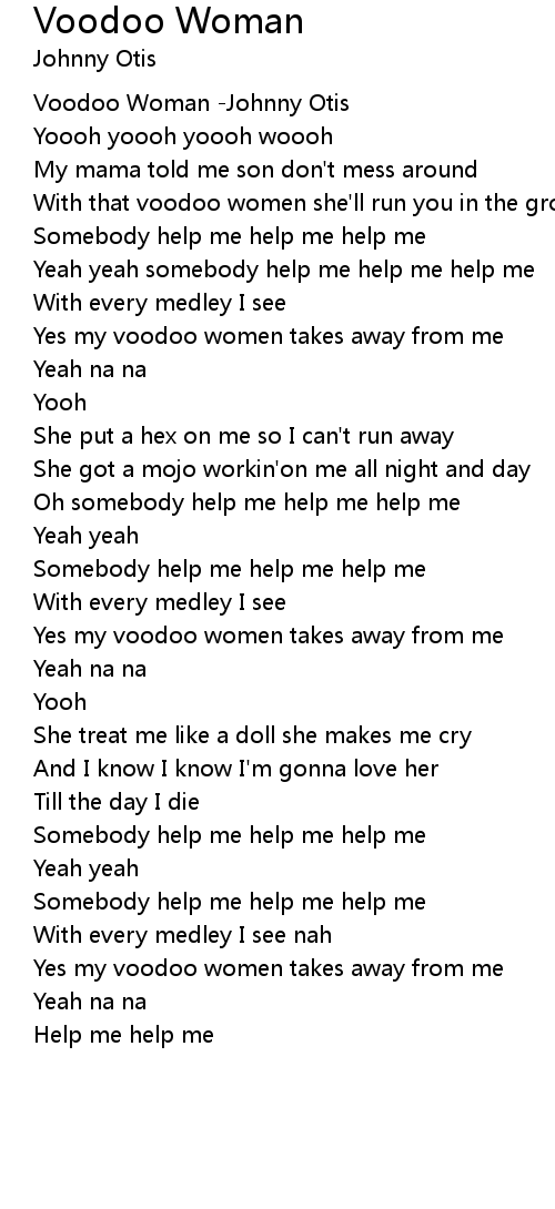 Yes my voodoo women takes away from me |