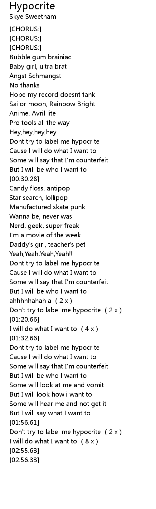 | [02:20.28] | Don't try to label me hypocrite (2 x) |