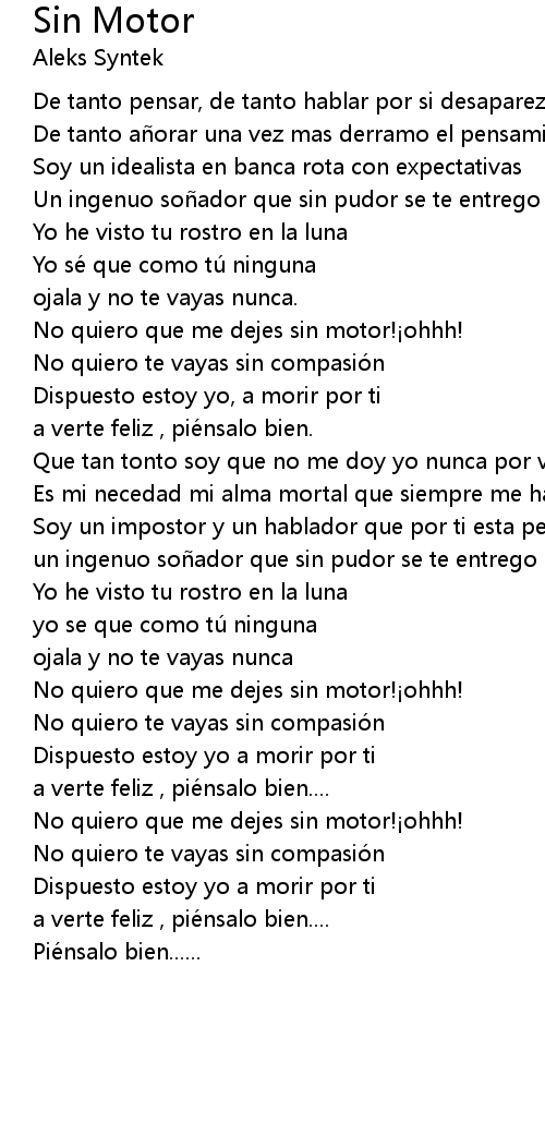 | 歌曲 | Sin Motor |