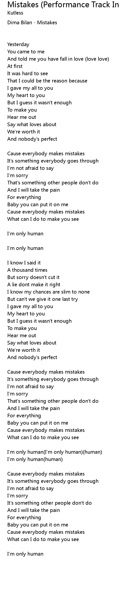 Mistakes (Performance Track In Key Of G Without Background Vocals) 歌词