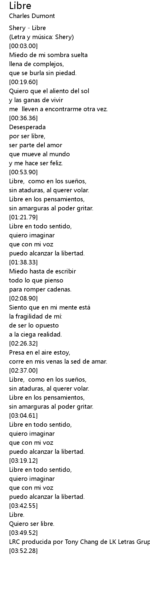 | [03:45.27] | Quiero ser libre. |