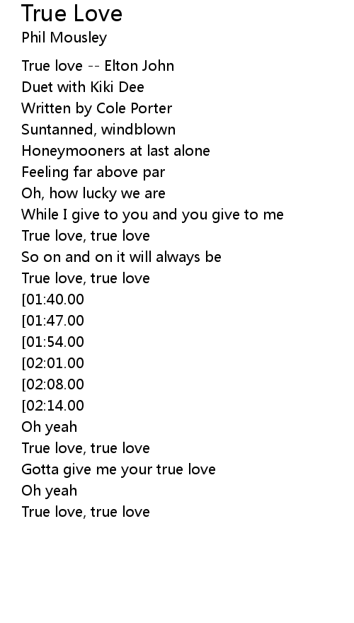 [00:02.00] True love -- Elton John