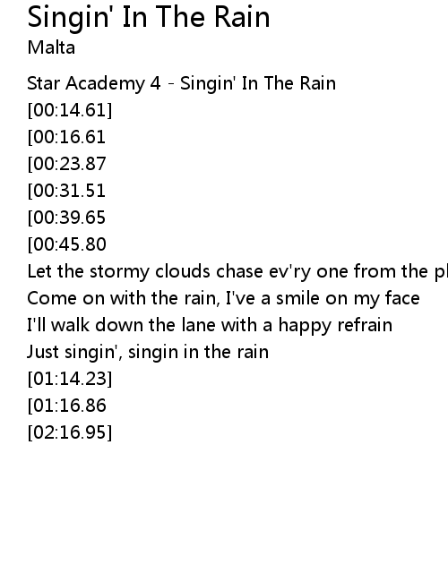 | [00:00.00] | Star Academy 4 - Singin' In The Rain |