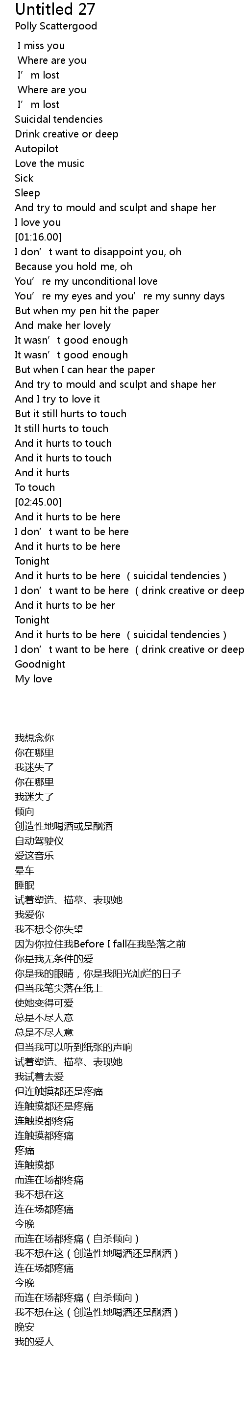 | [03:28.000] | 而连在场都疼痛(自杀倾向) |