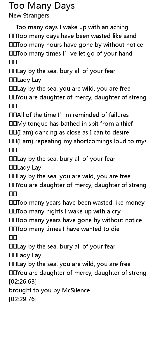 | 歌曲 | Too Many Days |