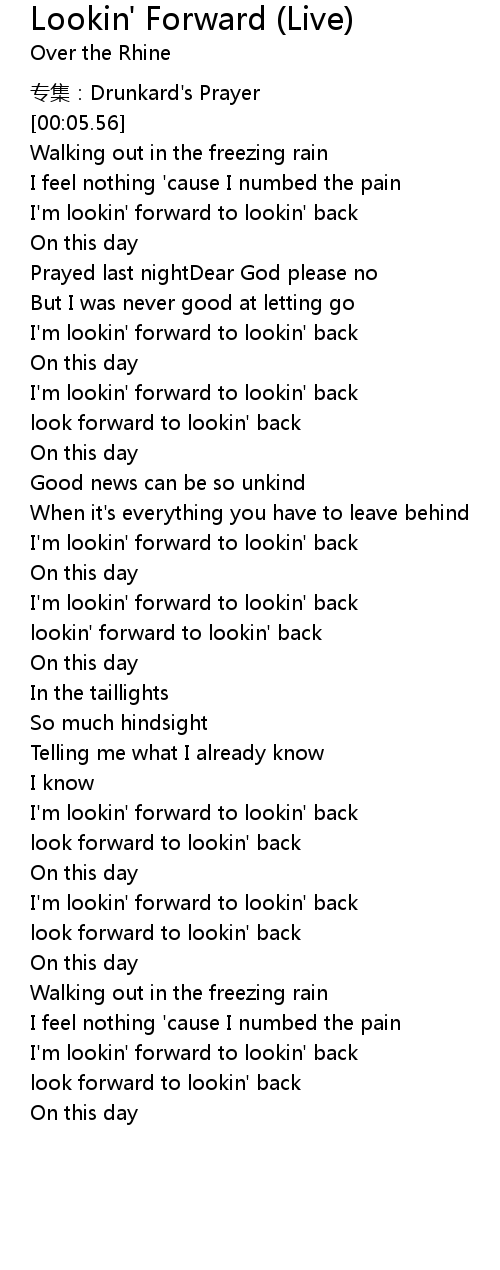 | [00:51.76] | I' m lookin' forward to lookin' back |