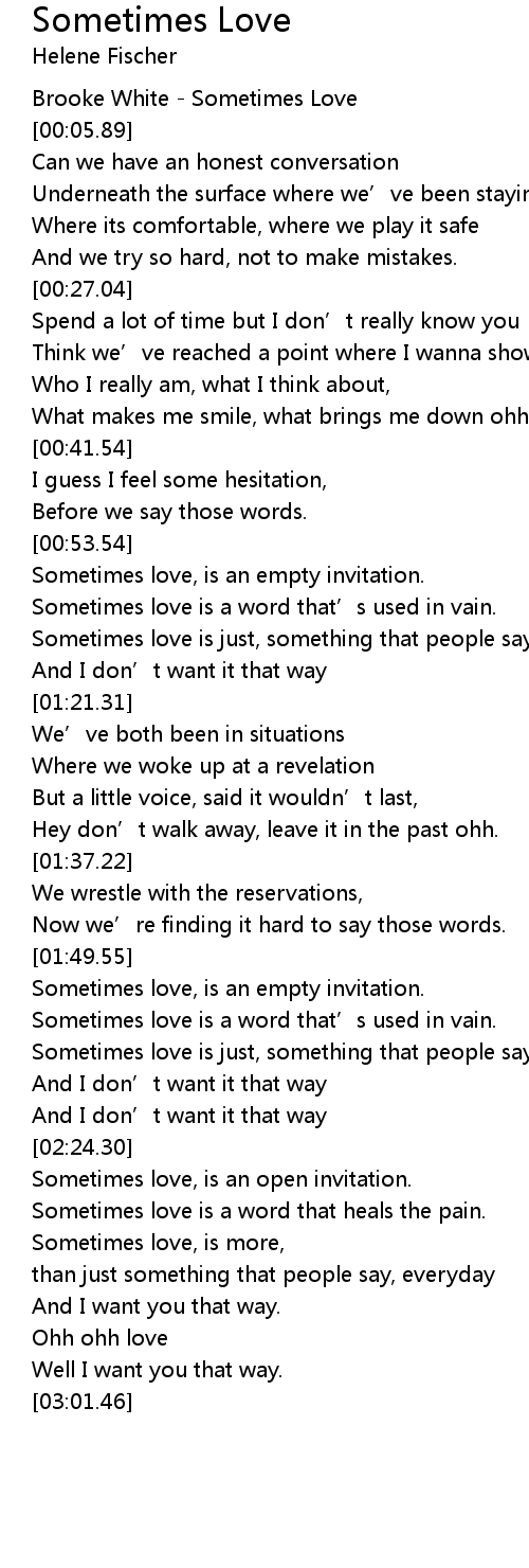 | [00:01.12] | Brooke White Sometimes Love |