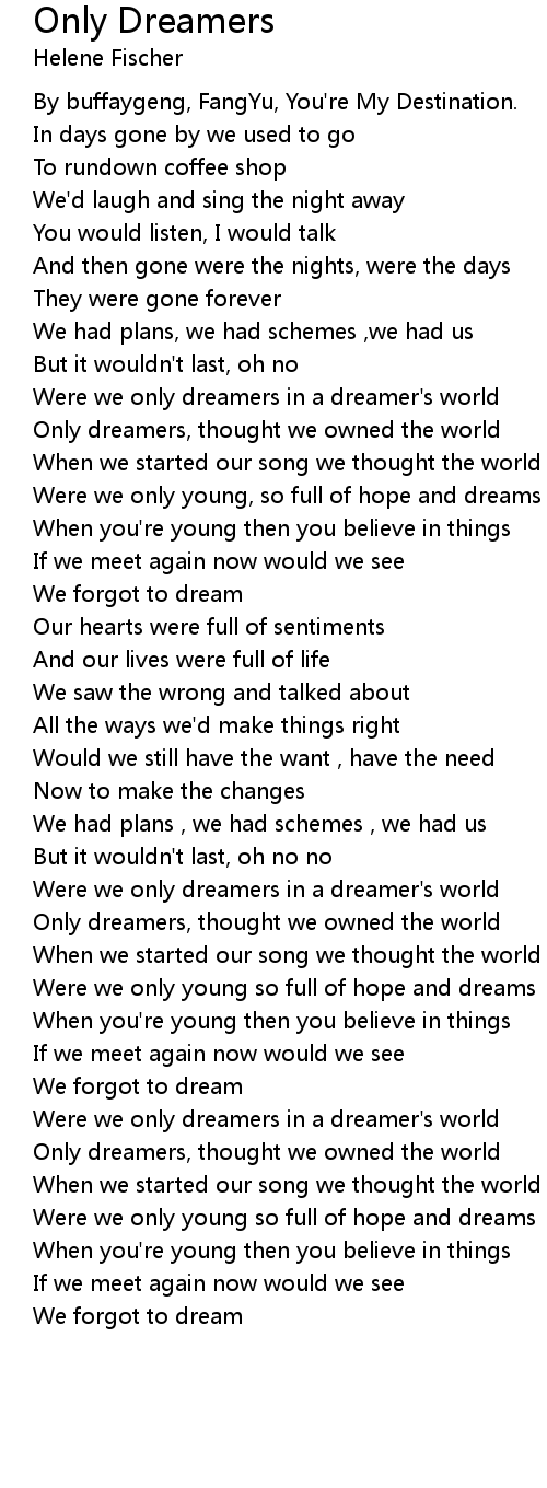 Were we only dreamers in a dreamer's world |