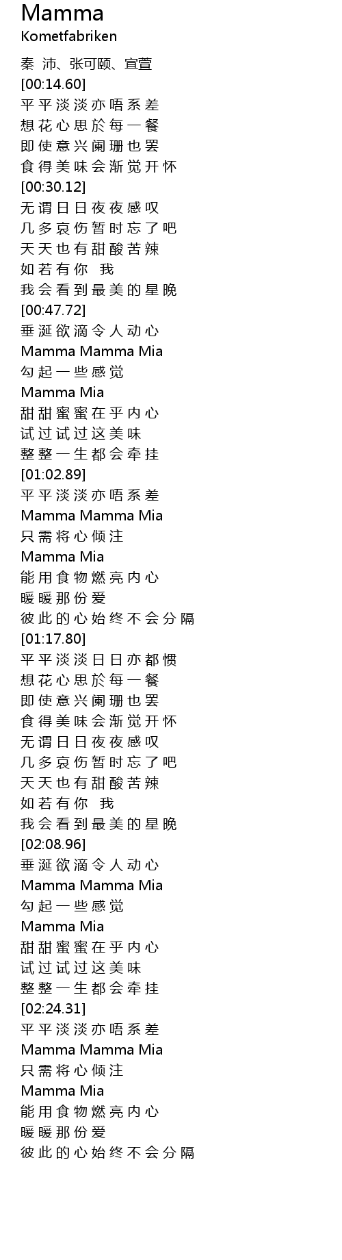 | [01:40.59] | 想 花 心 思 於 每 一 餐 |