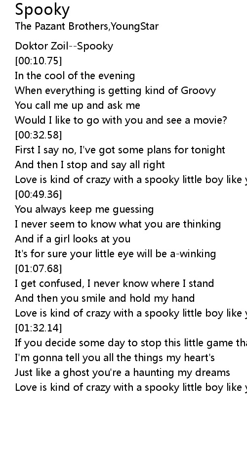 [01:18.35] Love is kind of crazy with a spooky little boy like you Spooky
