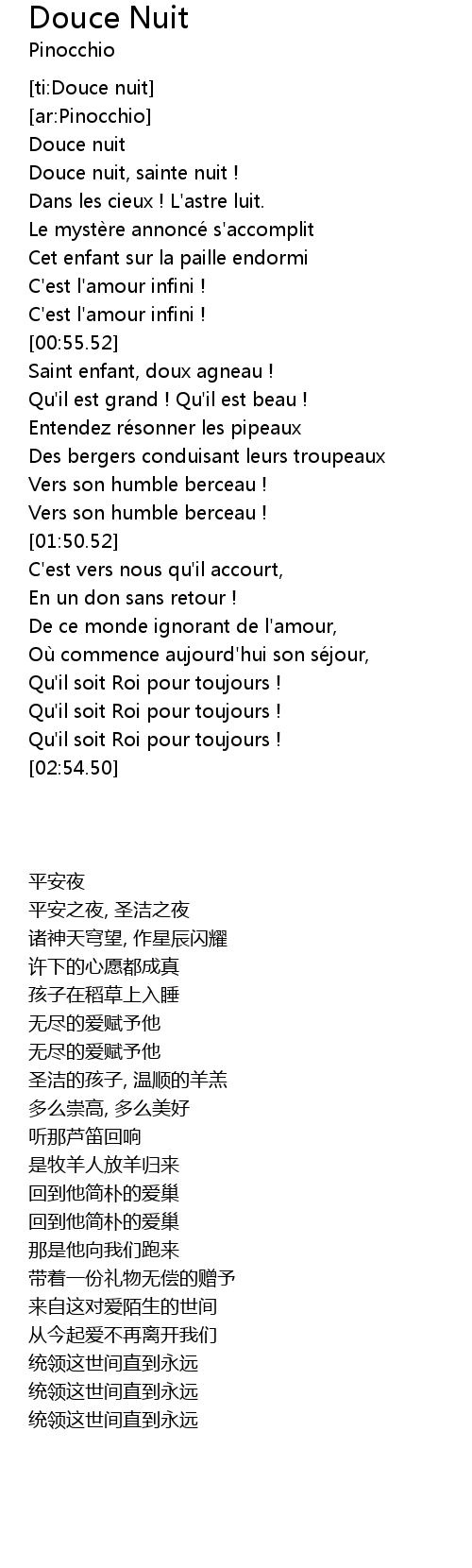| [00:08.20] | Douce nuit, sainte nuit ! |