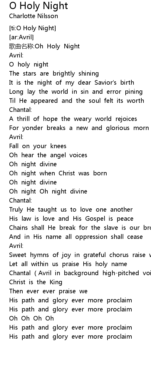 | [00:02.05] | gē qǔ míng chēng: Oh Holy Night |