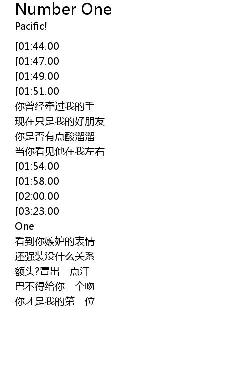 | [02:55.00][01:49.00][00:56.00][00:26.00] | 你才是我的Number One |