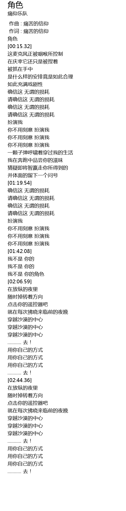| [00:01.00] | 作词 : 痛苦的信仰 |