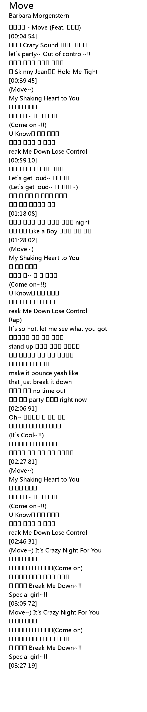 | [00:01.26] | 원더걸스 - Move (Feat. 이민우) |