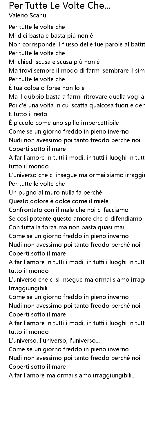 | [00:34.76] | Mi chiedi scusa e scusa piu non e |