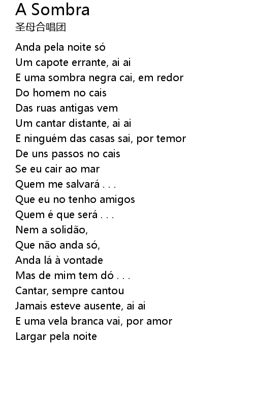 | 歌曲 | A Sombra |