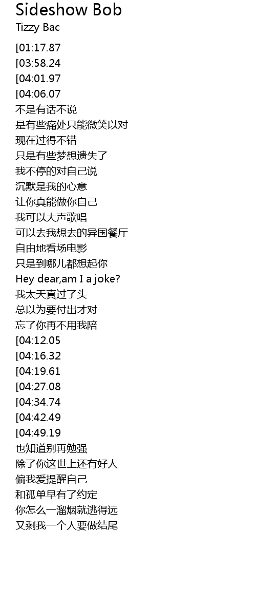 | [00:30.79][01:17.87][03:54.35] | Hey dear,it's just a joke |