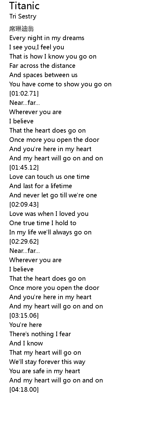 | [04:02.83] | And my heart will go on and on |