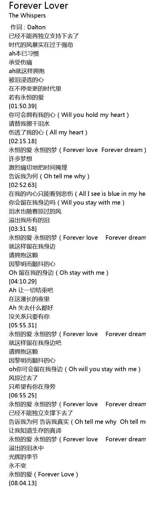| [07:59.95] | 永恒的爱(Forever Love) |