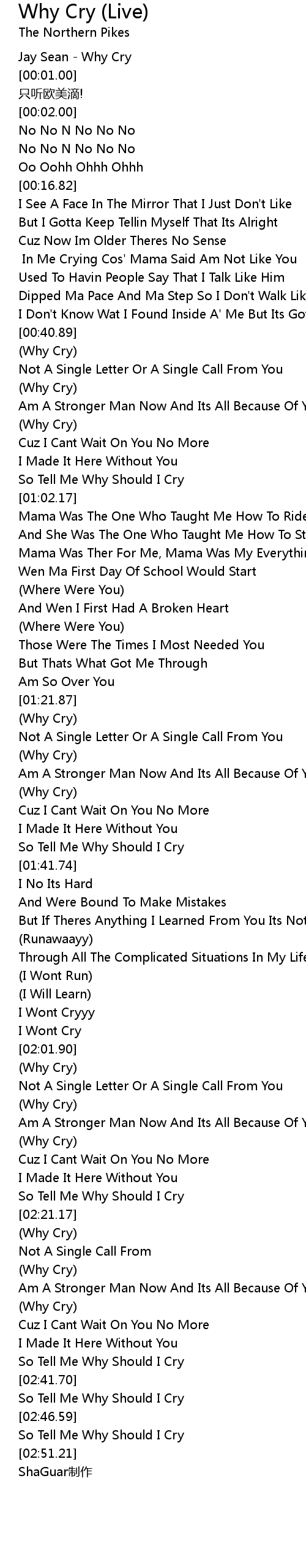 | [02:26.31] | (Why Cry) |