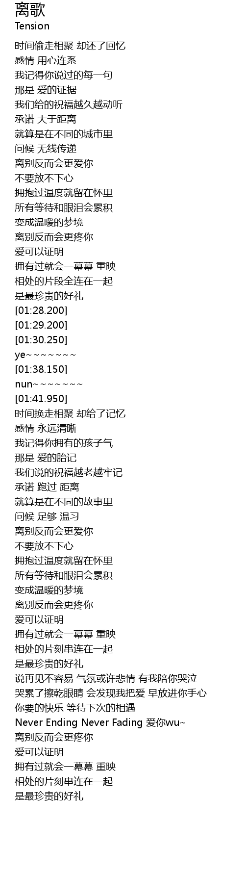 | [03:18.820] | Never Ending Never Fading 爱你wu~ |