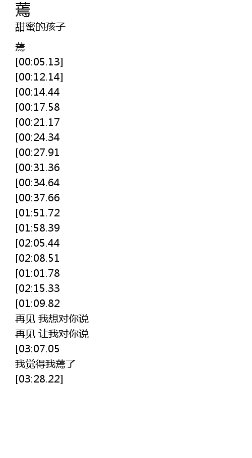 | [03:00.69][02:05.44][00:55.44] | 再见 我想对你说 |