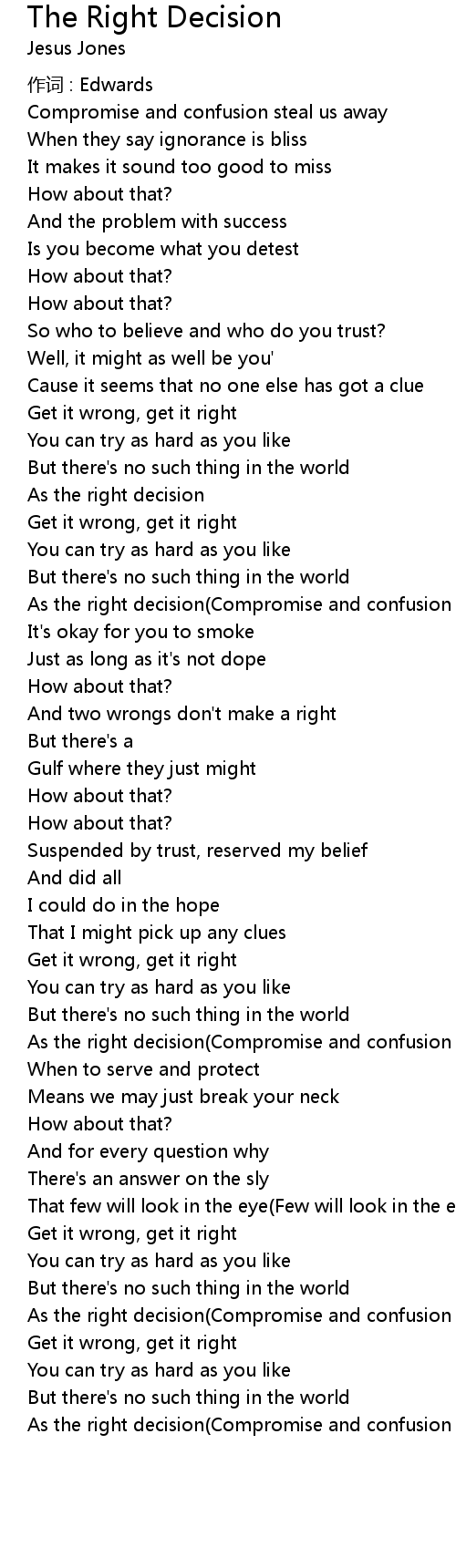 | As the right decision(Compromise and confusion steal us away) | |